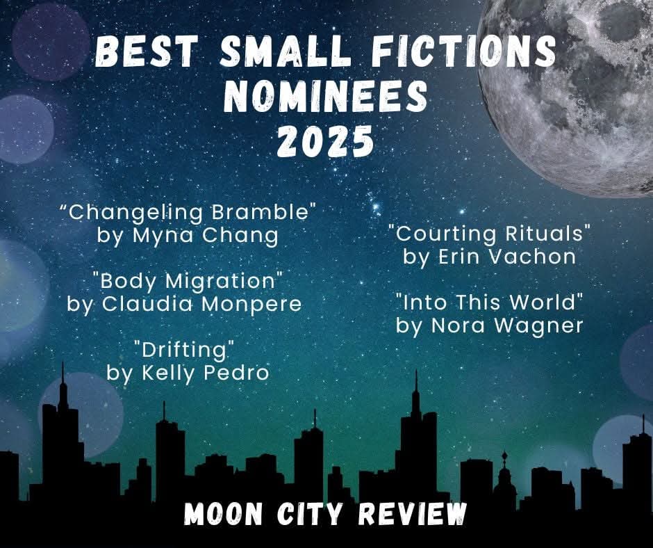 Congrats and good luck to Moon City Review‘s 2025 Best Small Fictions nominees: Myna Chang, Claudia Monpere, Kelly Pedro, Erin Vachon, and Nora Wagner!